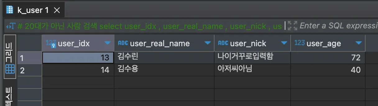user_age int default 0 comment '유저 나이',